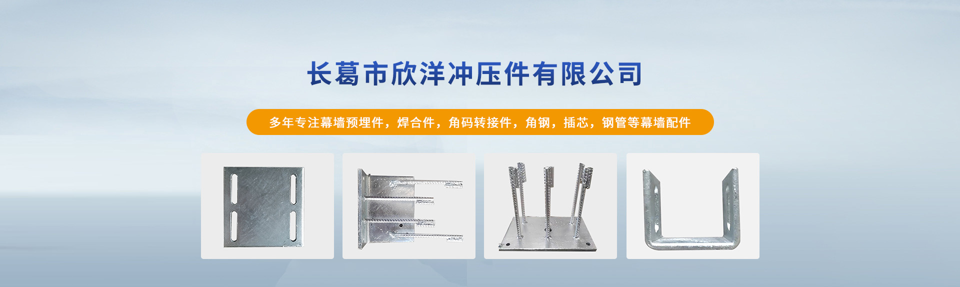 長葛市欣洋沖壓件有限公司是一家專業從事幕墻預埋件,焊合件,角碼轉接件,角鋼,插芯,鋼管等幕墻配件的建材供應商。